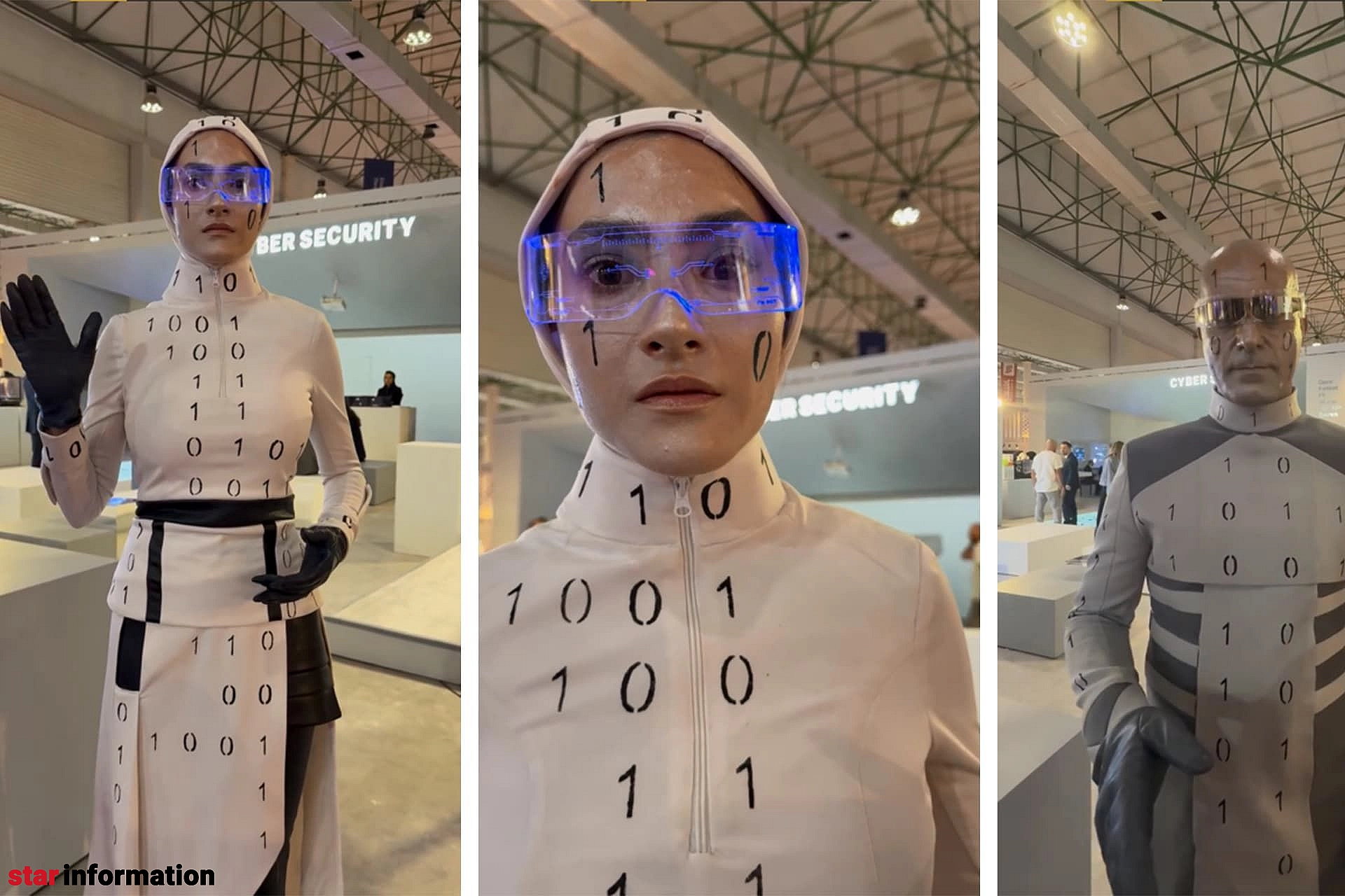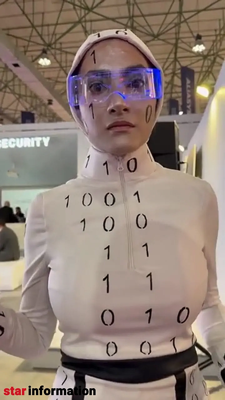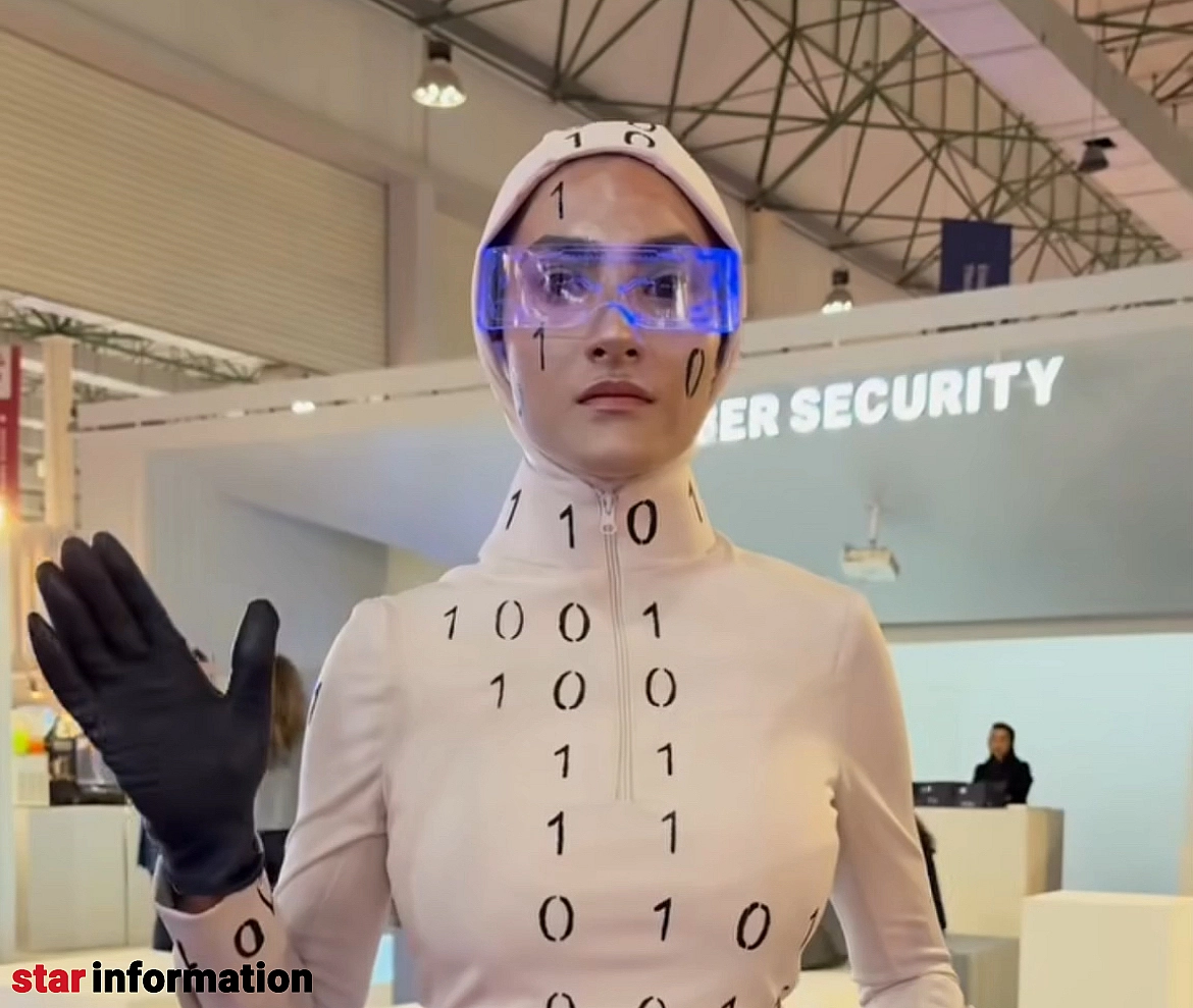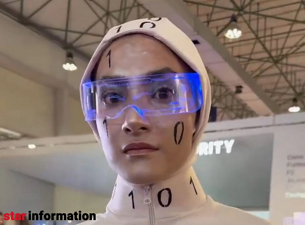 یکی از چهرههایی که در ویدیوی منتشرشده از نمایشگاه کیش دیده میشد، شخصیتی با نام میس دیتا بود؛ یک زن جوان با لباس سفید، شیلد شفاف، چاپ اعداد دودویی و نوعی آرایش که حالت سرد و ماشینی به چهرهاش میداد. او در ویدیوها خود را «دختر دادهها» معرفی میکرد و با حرکات کند و طراحیشده، نقش یک ربات انساننما را بازی میکرد. اما کاربران خیلی زود فهمیدند که ماجرا یک اجرای نمایشی ساده است.